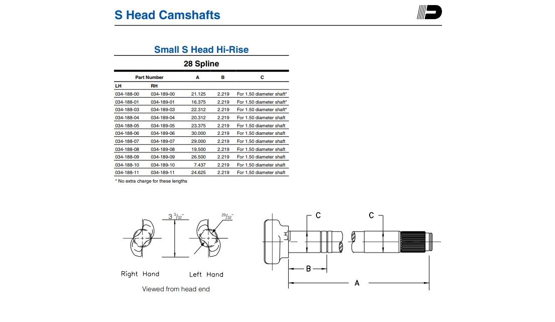"S" HEAD 28 SPLINE "LEFT HAND" CAM SHAFT (19.5") FOR 12 1/4" X 7 1/2"