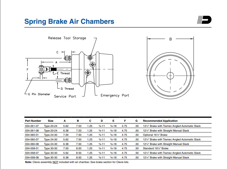 Spring Brake 34-261-07 12.25" Brake with Tramec Angled Automatic Slack