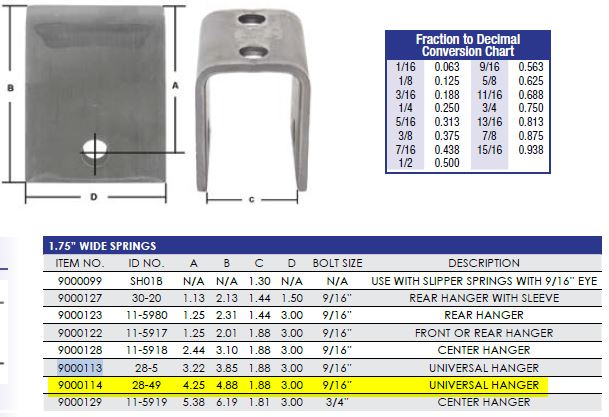 HANGER 1.75 x 4.25HC/2K - 7K Axle Front / Center or Rear Hanger for 1-3/4"wide Double Eye Springs