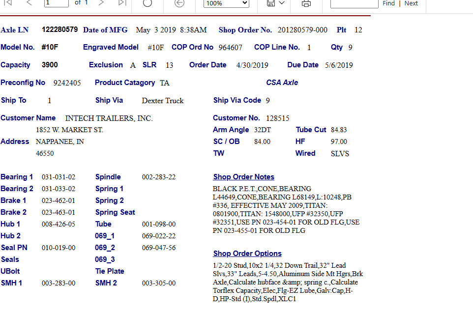 10F*** AXLE BEAM 3.9*** FLGD;W/EZ LUBE , HF=97", OB=84", 32 DOWN, HP, STD BRACKETS, PER TAG #  122280579