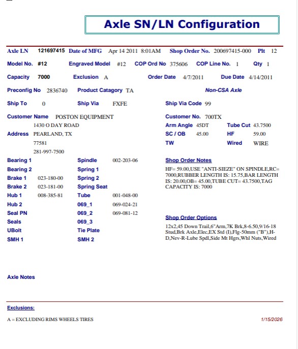 Stud,Brk Axle,Elec,EX Std (I),Flg-50mm ("B"),HD,Nev-R-Lube Spdl,Whl Nuts,Wire