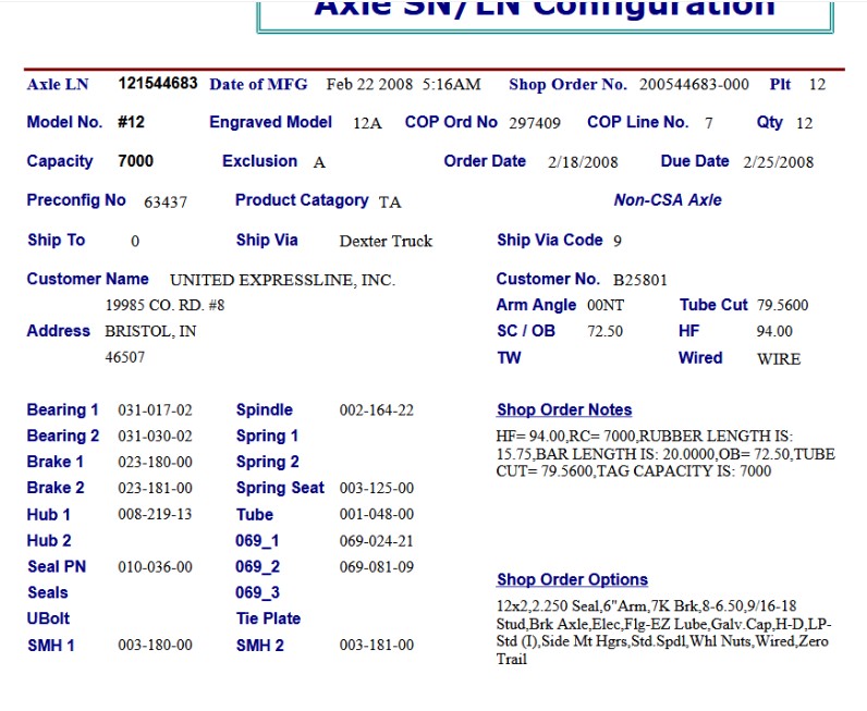 12TF 7K 865 ELEC W/EZ;LUBE, PER TAG #SN=121544683, HF=94, OB=72.5, 00NY ANGLE, LP, STD, **9/16 STUD***
