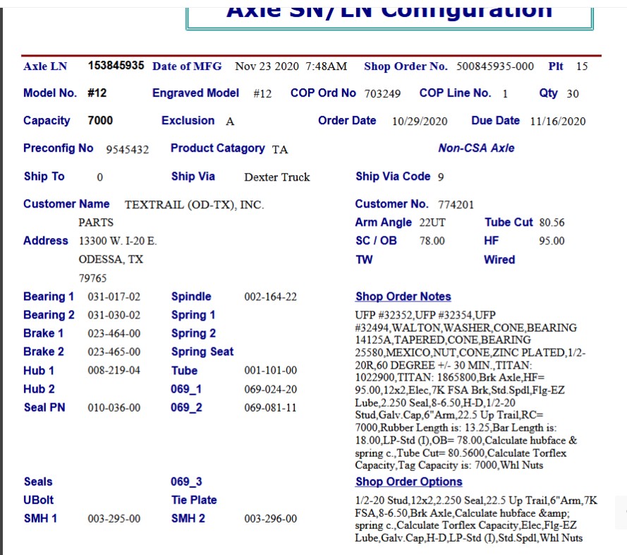 12TF 7K 865 ELEC W/EZ;LUBE, HF=95, OB=78, 22.5 UP, LOW PRO, STANDARD***POSSIBLE WARRANTY ISSUE*** PER TAG#153845935