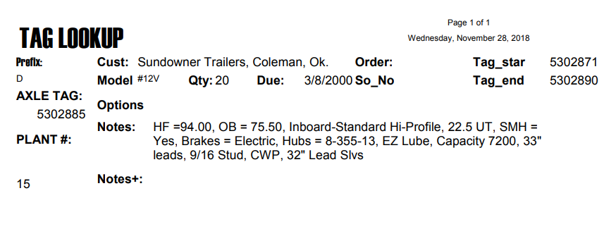 12VTF 7.2K 865 ELEC 9/16;STUDS W/EZ LUBE, PER TAG#D5302885, HF=94", OB=75.50, INBOARD, HIGH PROFILE, 22.5 UP