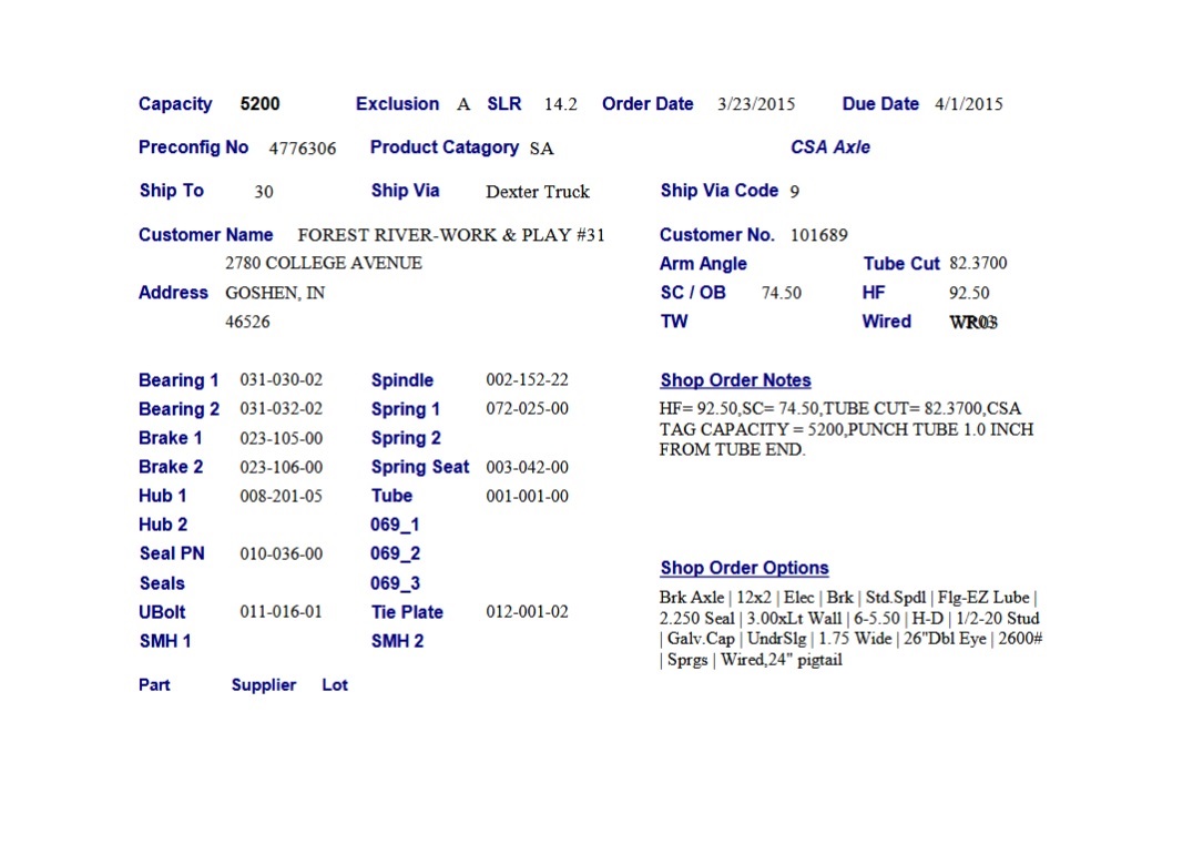 AXLE BEAM, 5.2K STR LITW;W/EZ , HF=92.5, SC=74.5, UNDERSLUNG