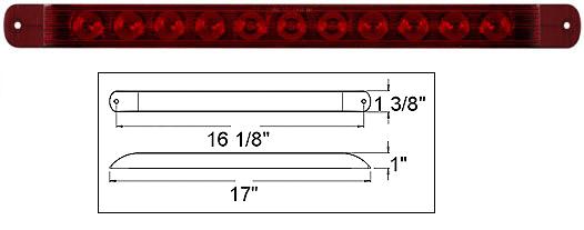 Sealed, surface mount, red LED stop/turn/tail light. Streamlined design with 11 super diodes for bright, dependable performance. Polycarbonate lens is sonic welded to housing for durability. All-weather molded plastic housing and durable lens protect against corrosion.