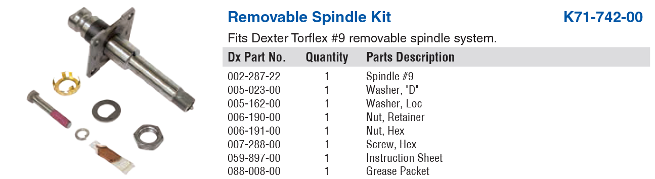 #9 REPLACEMENT SPINDLE FOR DEXTER REMOVABLE SPINDLE AXLES WITH FLANGE & EZ LUBE. CAN BE USED ON EITHER SIDE, NO LEFT OR RIGHT